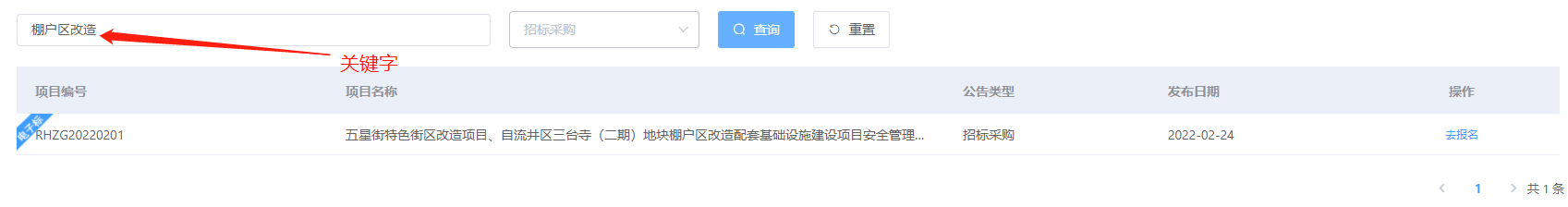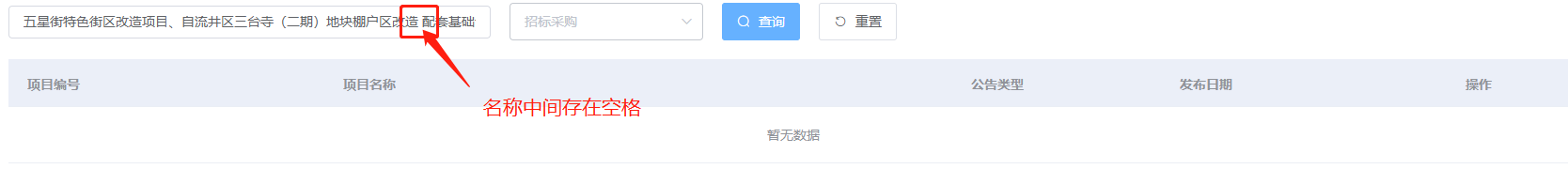 基于以上情况,建议搜索项目时只搜索项目名称的关键字。如下图所示: